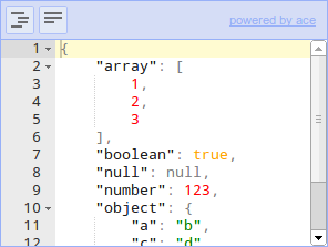 The code editor displays JSON data in a code editor. The editor is capable of formatting, compacting, and inspecting JSON.